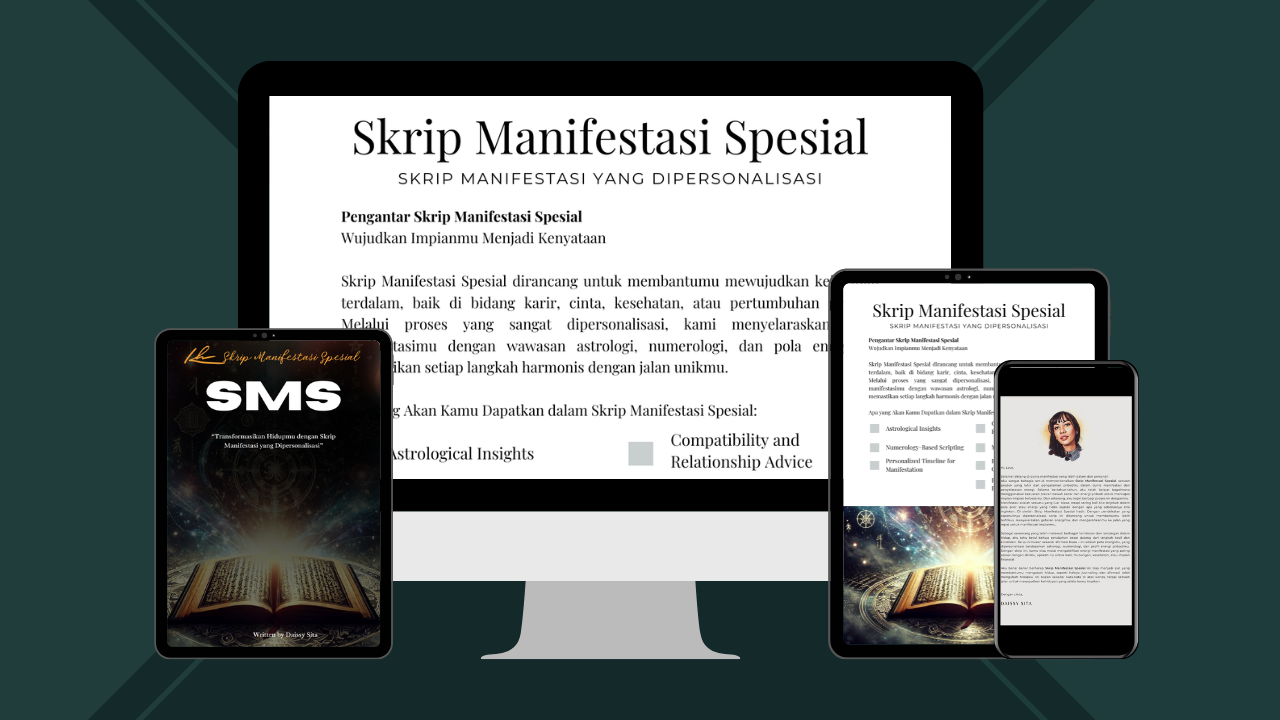 Pendekatan yang dipersonalisasi ini akan membimbingmu dalam memprogram ulang pikiran bawah sadar, meningkatkan getaran energimu, dan menyelaraskan energimu untuk manifestasi yang maksimal. Dalam beberapa hari ke depan, kamu akan menerima skrip yang disesuaikan berdasarkan profil energimu, dan dari sana, lihatlah bagaimana impianmu mulai terwujud menjadi kenyataan.