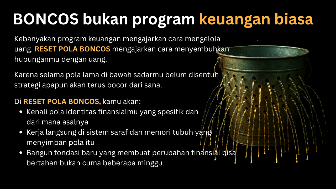 - Kamu udah coba budgeting, investasi, semua metodeĀ tapi polanya tetap sama
